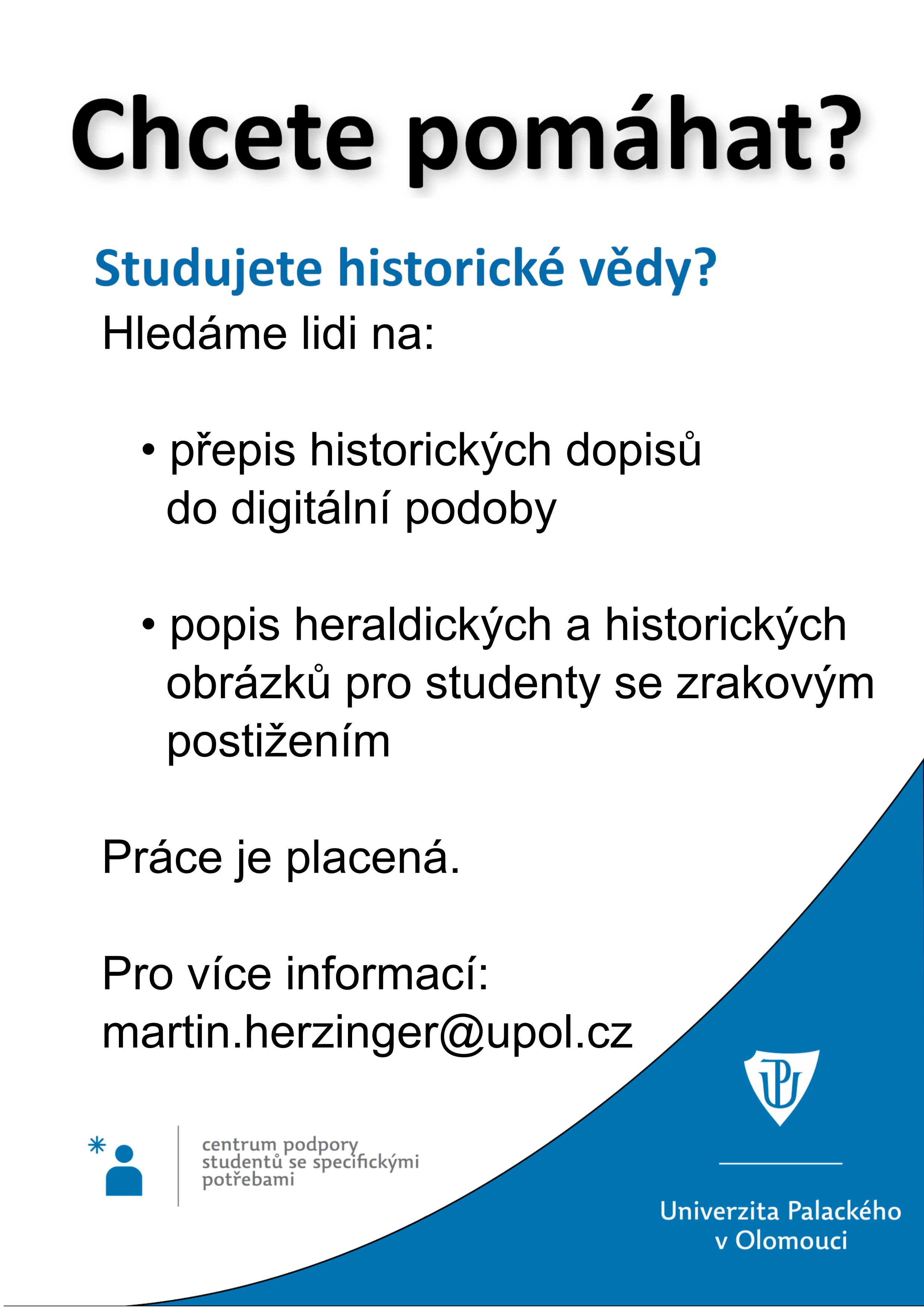 Centrum podpory studentů se specifickými potřebami shání studující z katedry historie, kteří by chtěli pracovat na: